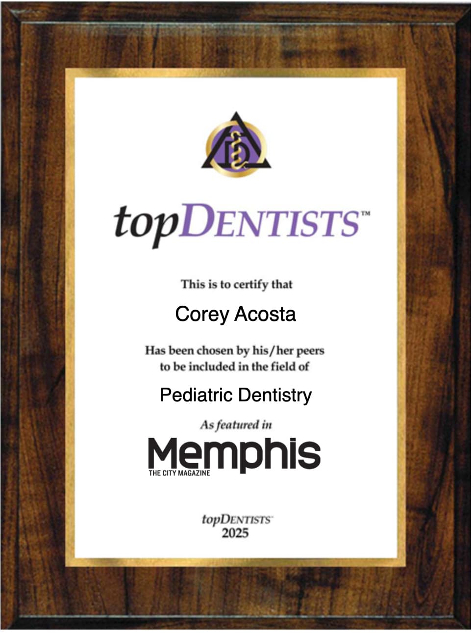 Dr. Acosta earned his Doctorate in Dental Surgery (DDS) at the University of Tennessee Health Science Center. Following dental school, Dr. Corey completed his pediatric dental residency training at the University of Tennessee Health Science Center where he also earned his Masters Degree in Dental Science (MDS).